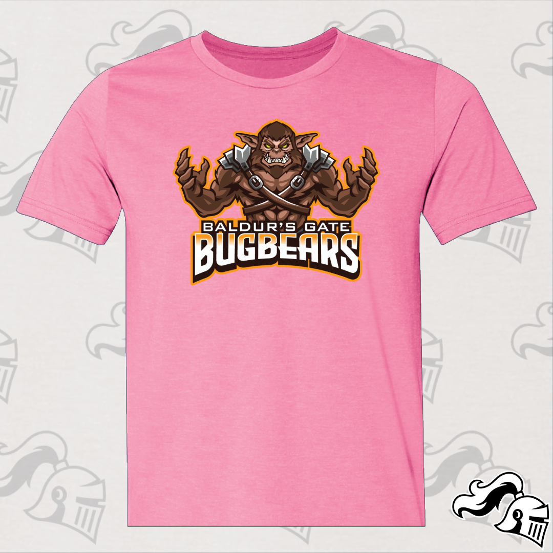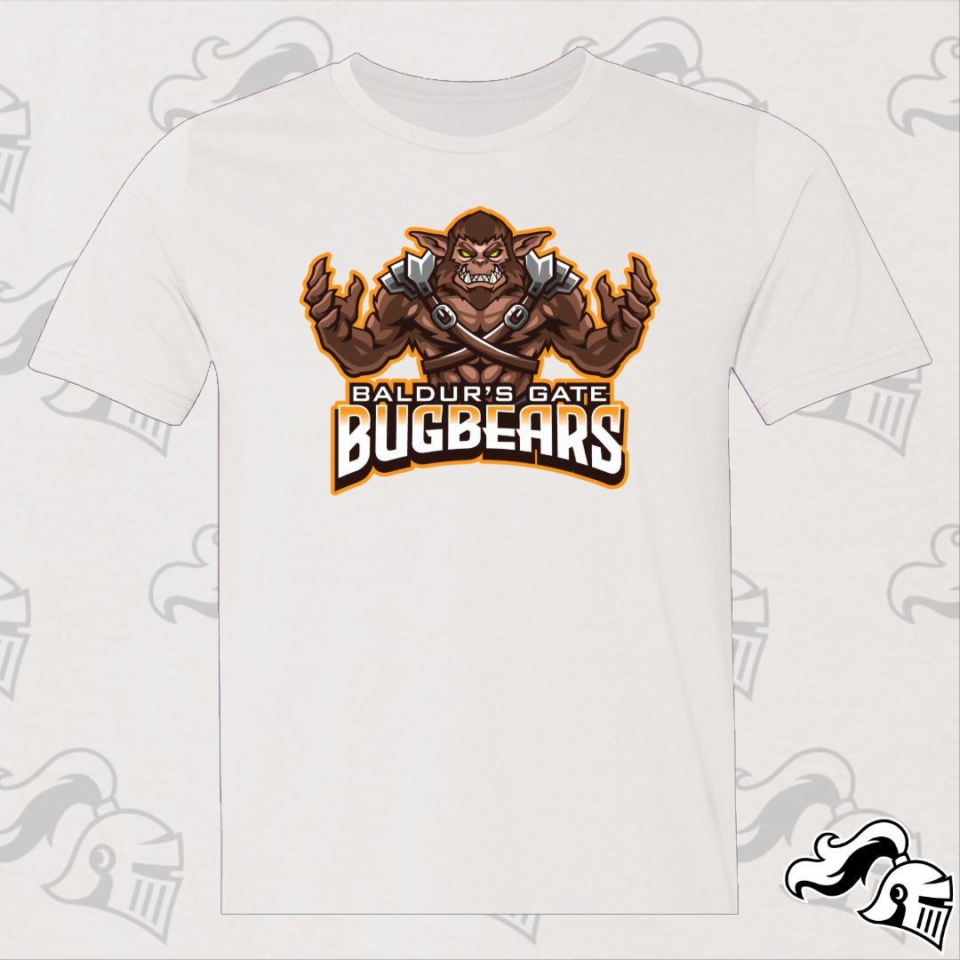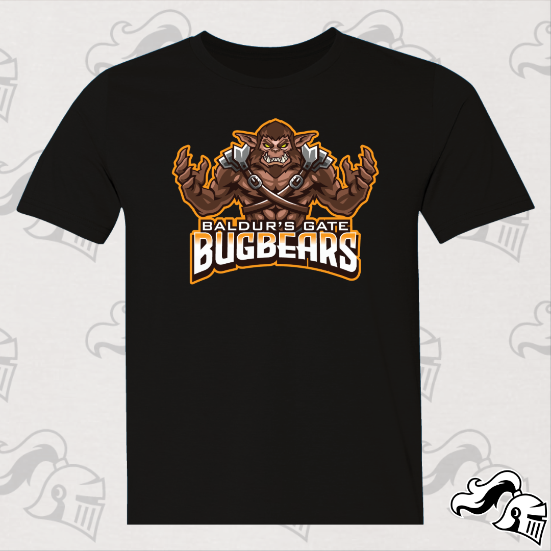 Get ready to cheer for your favorite fantasy sports team—the Baldur's Gate Bugbears! This shirt brings the gritty spirit of Dungeons & Dragons to life with a design that blends the ferocity of bugbears with the energy of a sports shirt. Whether you’re battling goblins in a dungeon or rooting for the home team in the city of Baldur’s Gate, this tee shows your allegiance in style. Perfect for D&D fans who like to mix their geek pride with a sporty vibe, it’s a must-have for adventurers and superfans alike. Let’s go Bugbears!