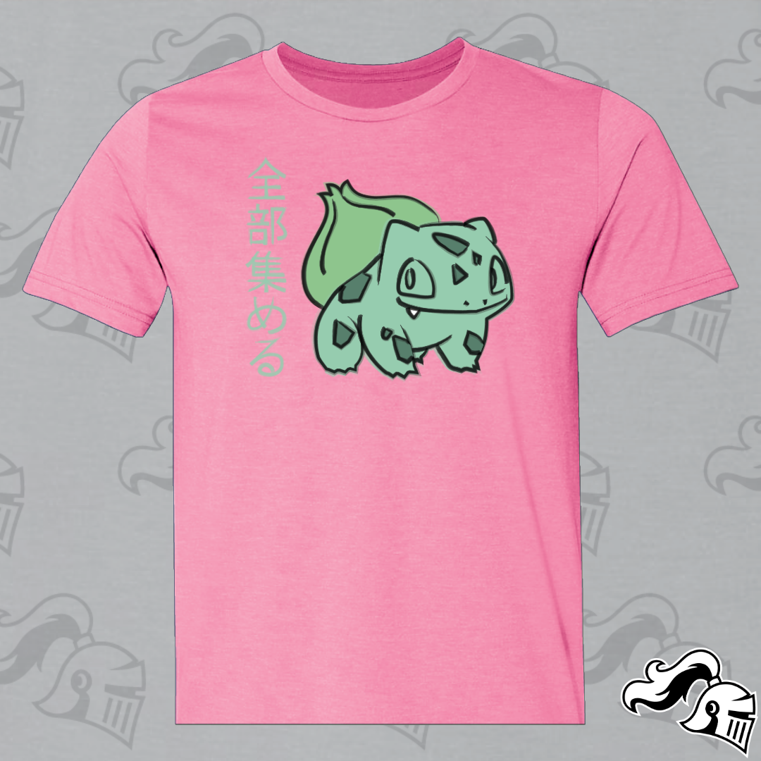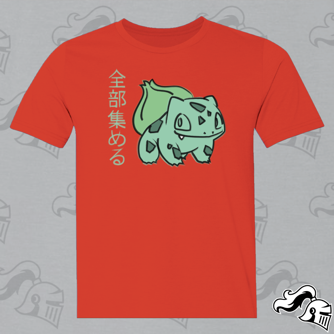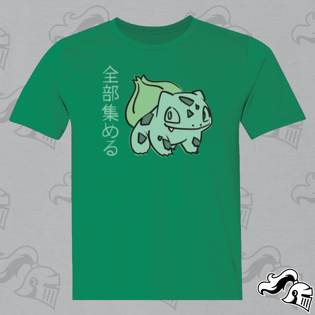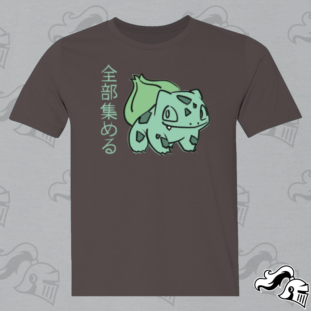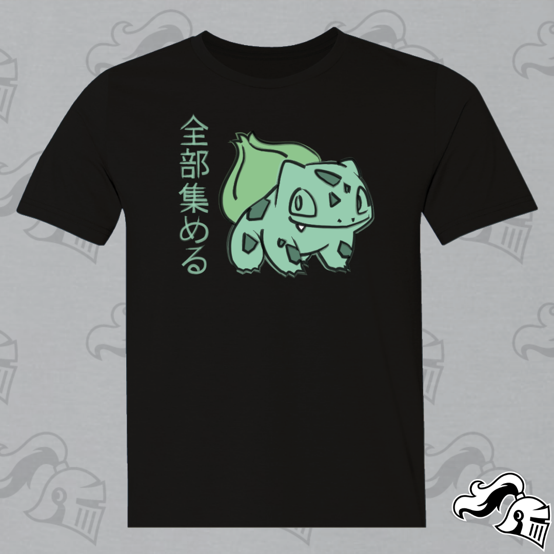 Get ready to catch them all in style with our Bulbasaur shirt, a captivating blend of Japanese artistry and Poké passion. At the heart of this design lies everyone's favorite Grass-type friend, reimagined in the graceful strokes of semi-traditional Japanese artwork.