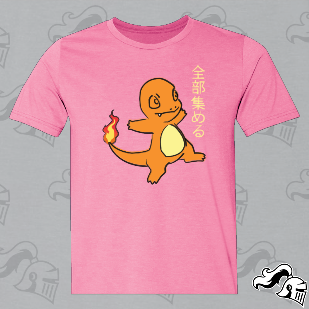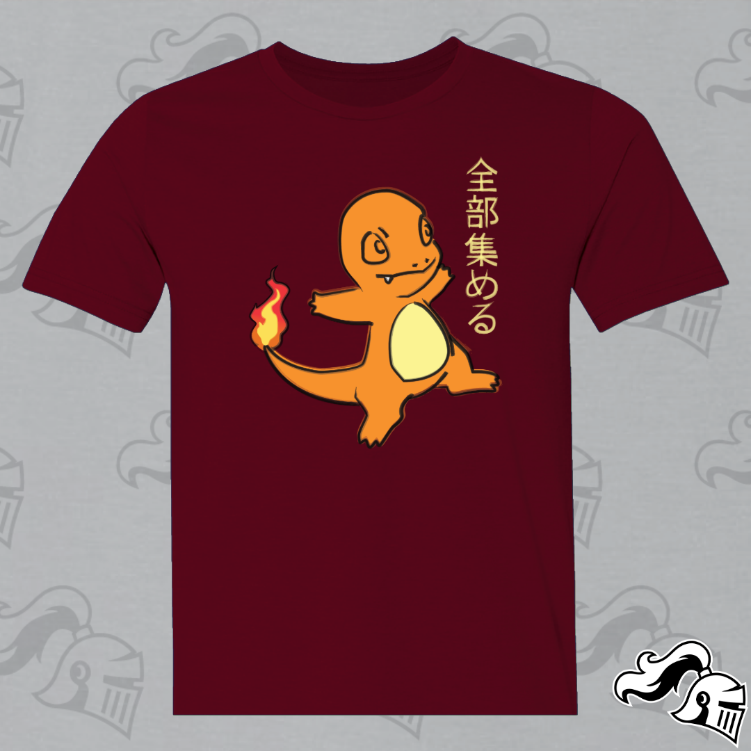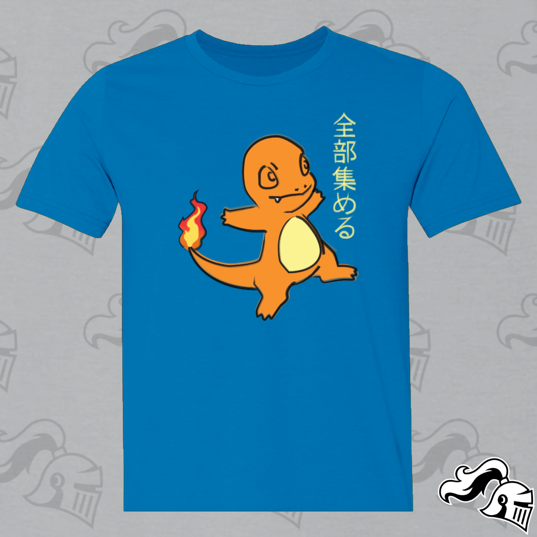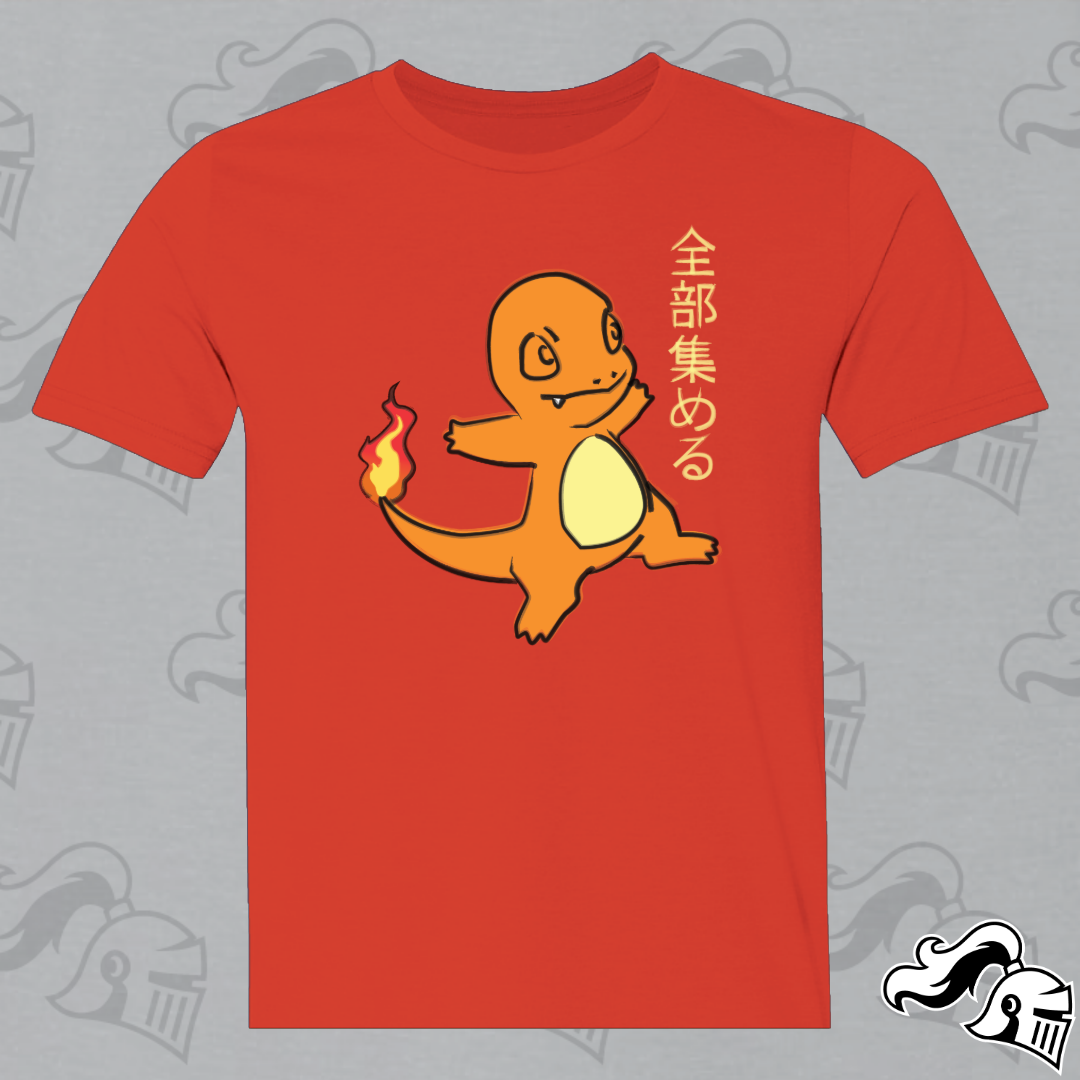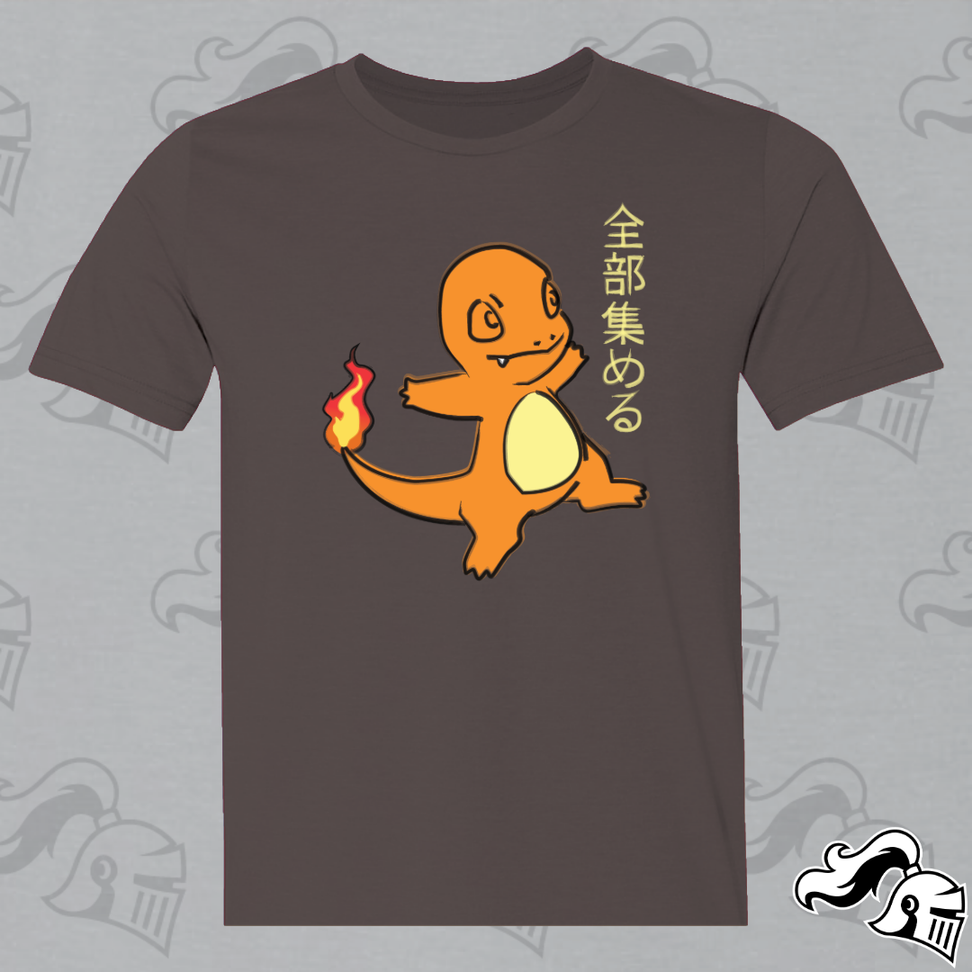 Get ready to catch them all in style with our Charmander shirt, a captivating blend of Japanese artistry and Poké passion. At the heart of this design lies everyone's favorite Fire-type friend, reimagined in the graceful strokes of semi-traditional Japanese artwork.