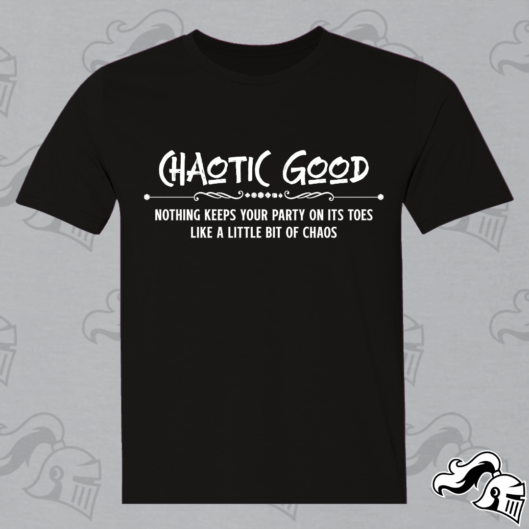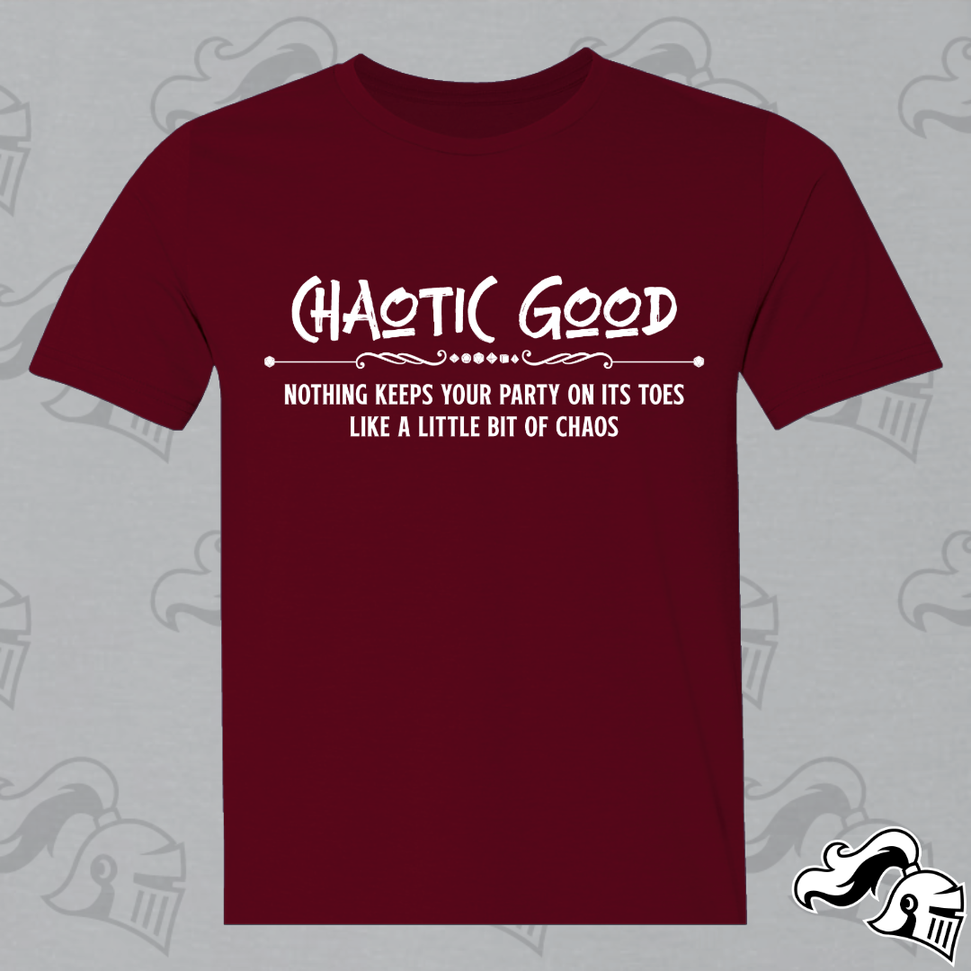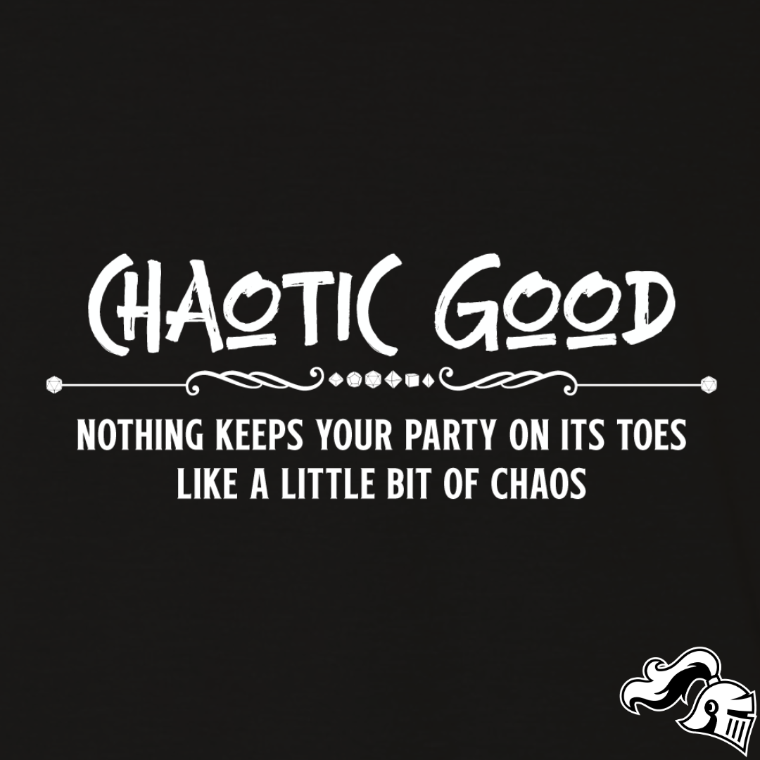 Embrace the wild side with our 'Chaotic Good' tee! Because let's face it, nothing spices up a quest like a dash of unpredictability. Stay true to your chaotic nature and keep your party on their toes—it's all part of the adventure!