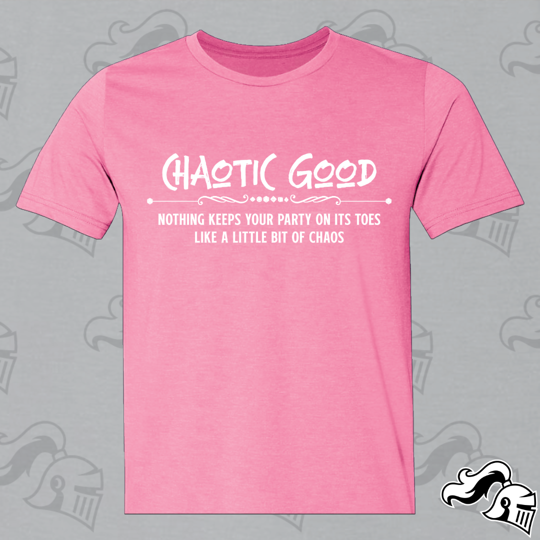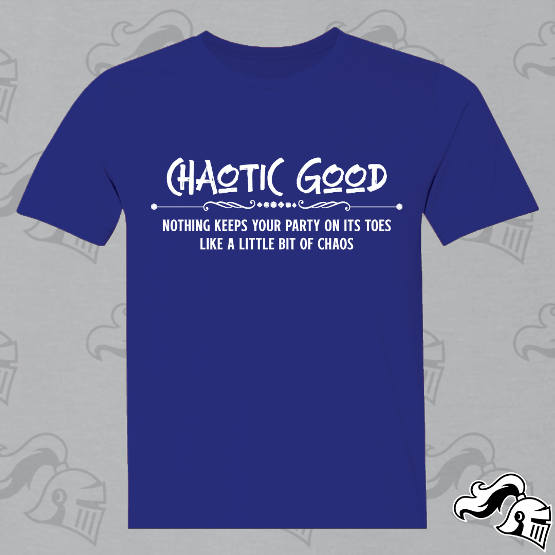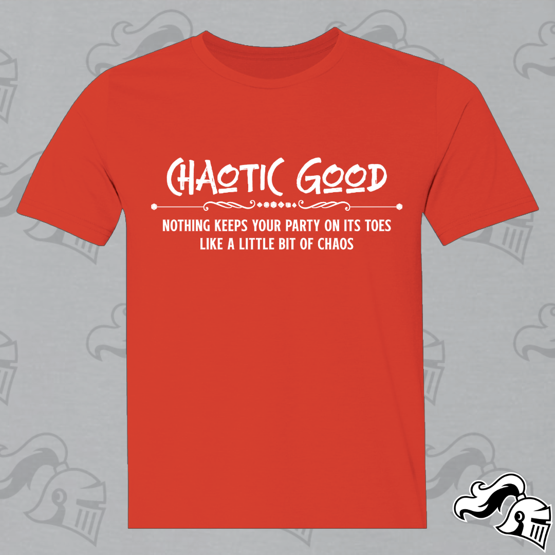 Embrace the wild side with our 'Chaotic Good' tee! Because let's face it, nothing spices up a quest like a dash of unpredictability. Stay true to your chaotic nature and keep your party on their toes—it's all part of the adventure!