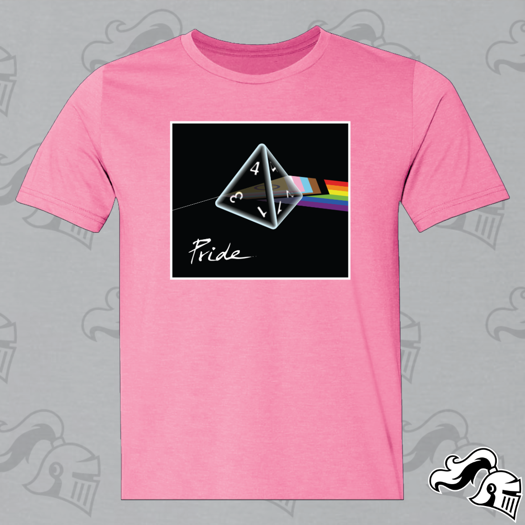 Step into the spotlight with our Pride Flag Darkside tee, a vibrant twist on the iconic Pink Floyd album logo. Celebrate diversity and inclusivity in style with this bold statement piece.