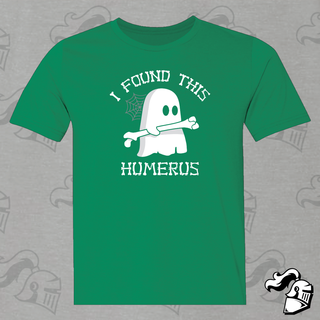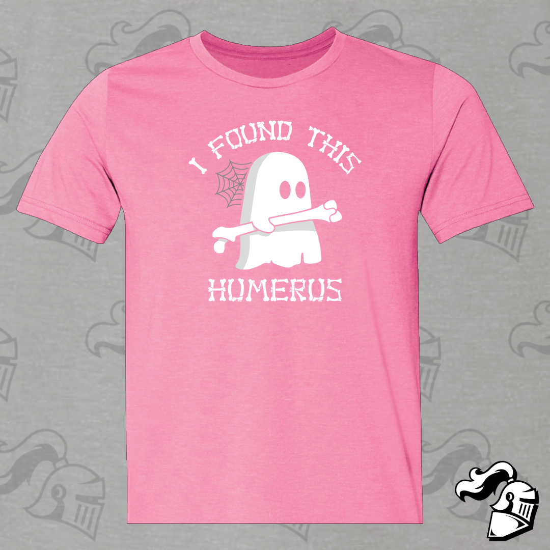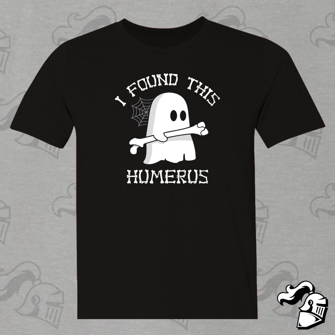 Get into the spooky spirit with a twist of humor! Our "I Found This Humerus" T-shirt features an adorable ghost holding a humerus bone (yes, the actual bone â not just the pun!), perfect for anyone who loves Halloween, skeleton puns, or just being bone-afide hilarious.