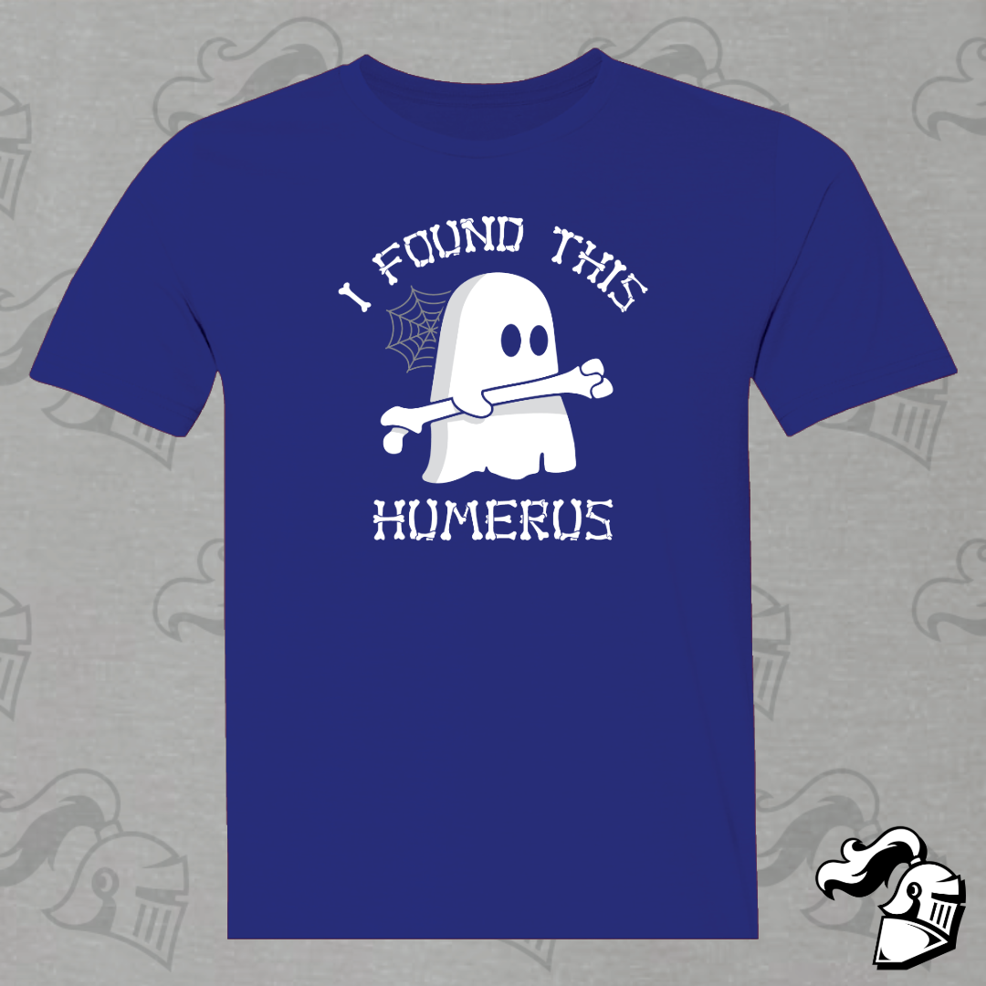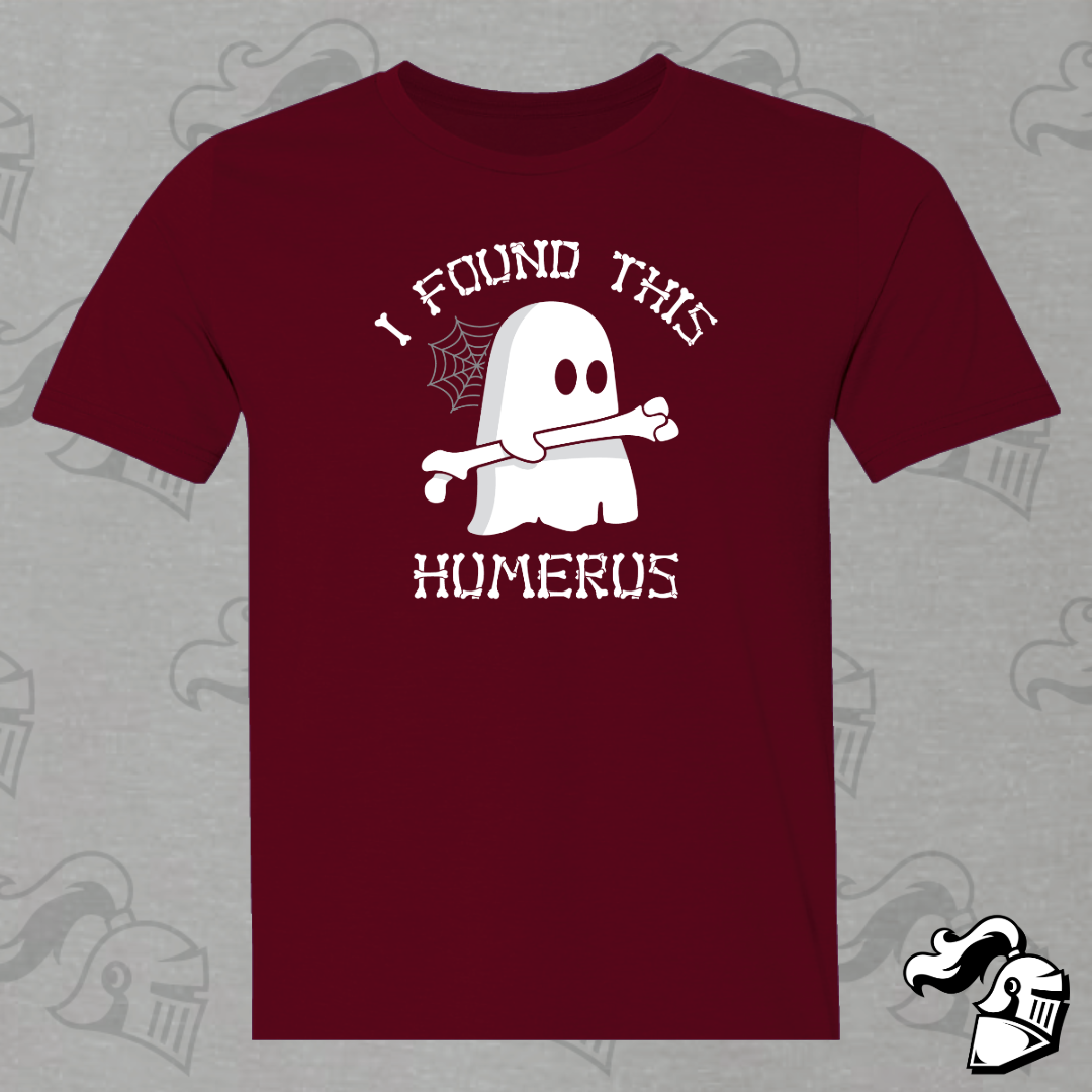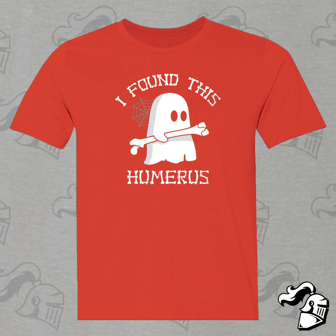 Get into the spooky spirit with a twist of humor! Our "I Found This Humerus" T-shirt features an adorable ghost holding a humerus bone (yes, the actual bone â not just the pun!), perfect for anyone who loves Halloween, skeleton puns, or just being bone-afide hilarious.
