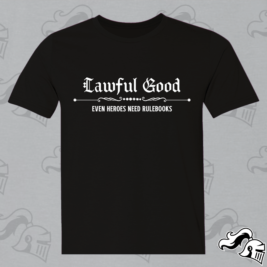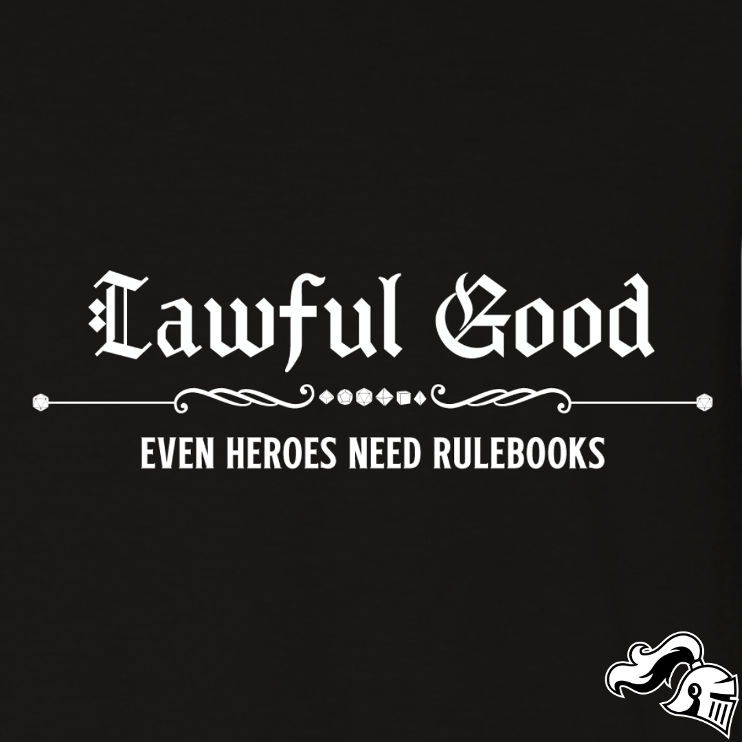 Embrace the code of righteousness with our 'Lawful Good' tee! Because when you're fighting for justice, a rulebook can be your best weapon. From paladins to paragons, this tee is a reminder that even heroes need a little guidance to keep the realm in balance!