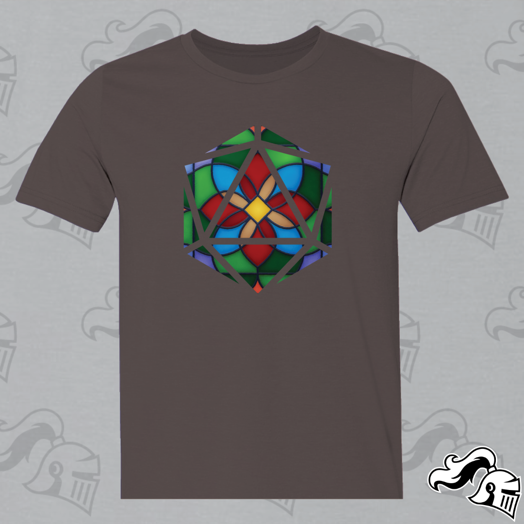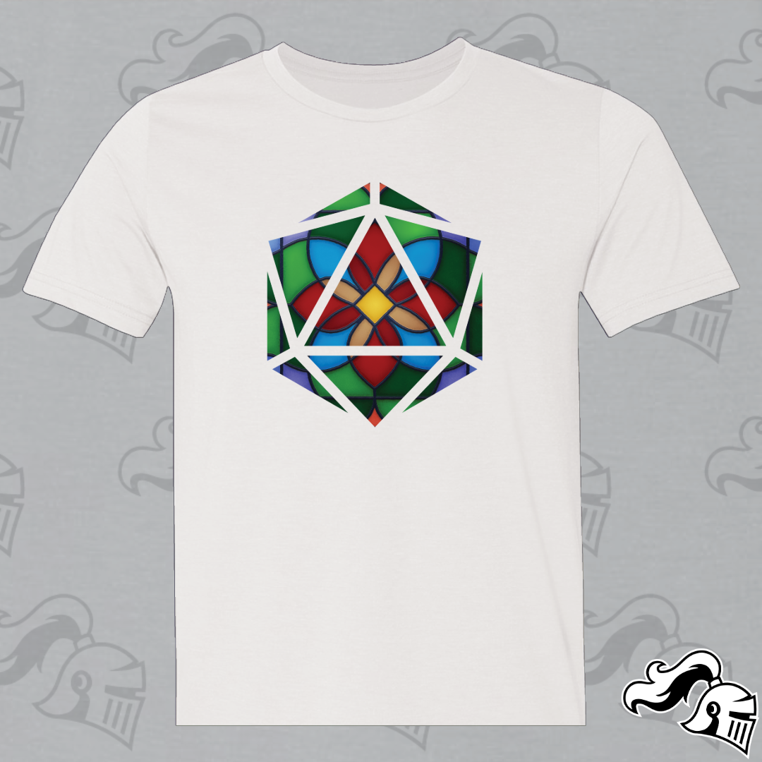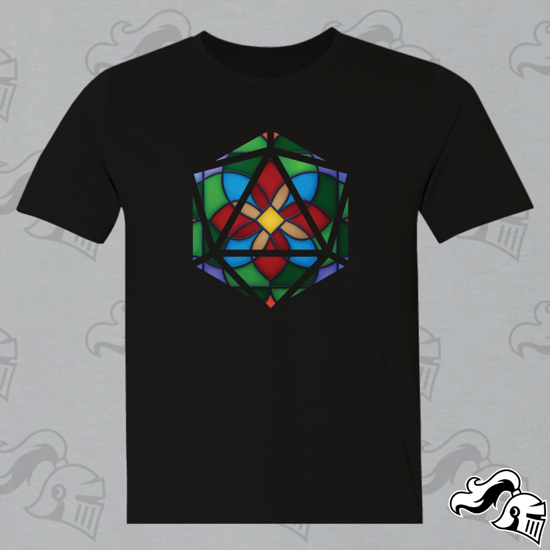 Elevate your gaming gear with this stunning design featuring a D20 that resembles a stained glass window. Perfect for tabletop enthusiasts who see beauty in every roll, this shirt combines the elegance of stained glass art with the thrill of Dungeons & Dragons. Whether you’re rolling for a critical hit or simply admiring the craftsmanship, this tee is a must-have for adventurers who appreciate the finer things—like a natural 20.
