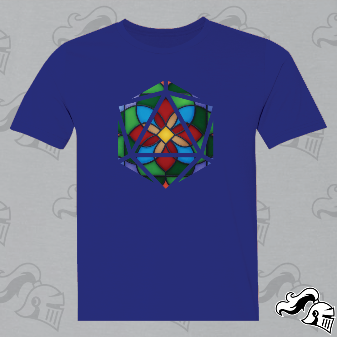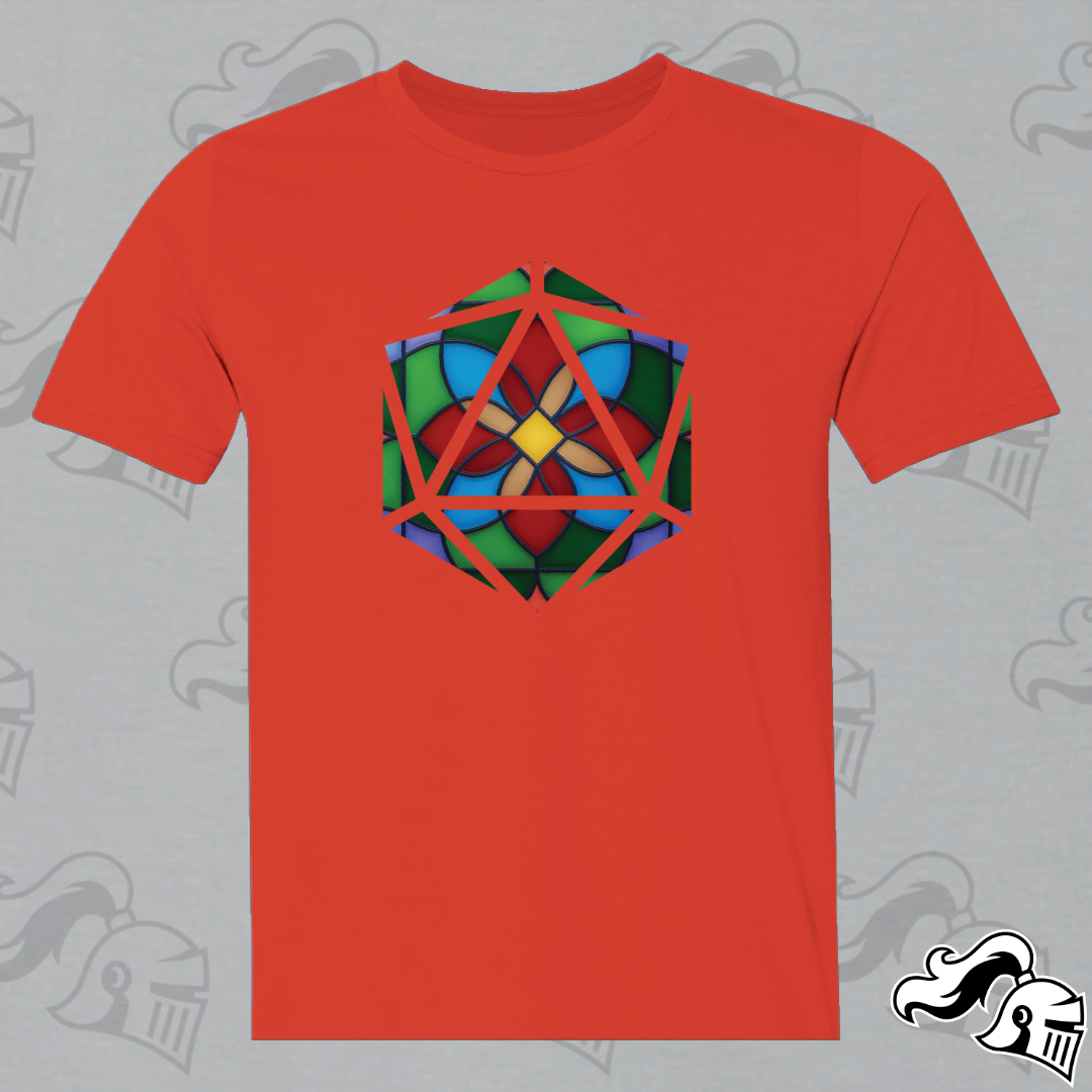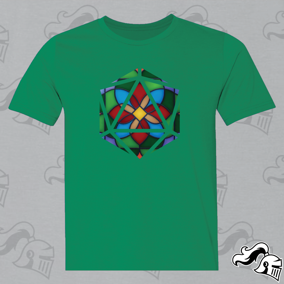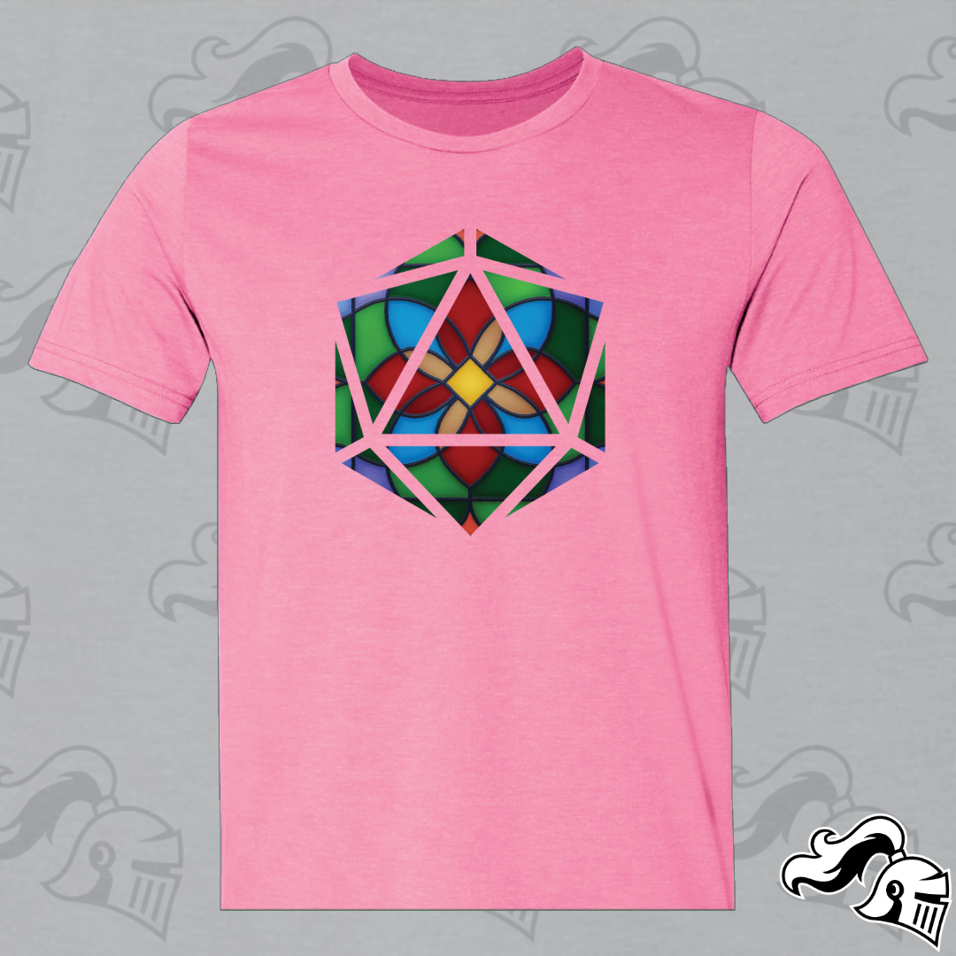 Elevate your gaming gear with this stunning design featuring a D20 that resembles a stained glass window. Perfect for tabletop enthusiasts who see beauty in every roll, this shirt combines the elegance of stained glass art with the thrill of Dungeons & Dragons. Whether you’re rolling for a critical hit or simply admiring the craftsmanship, this tee is a must-have for adventurers who appreciate the finer things—like a natural 20.